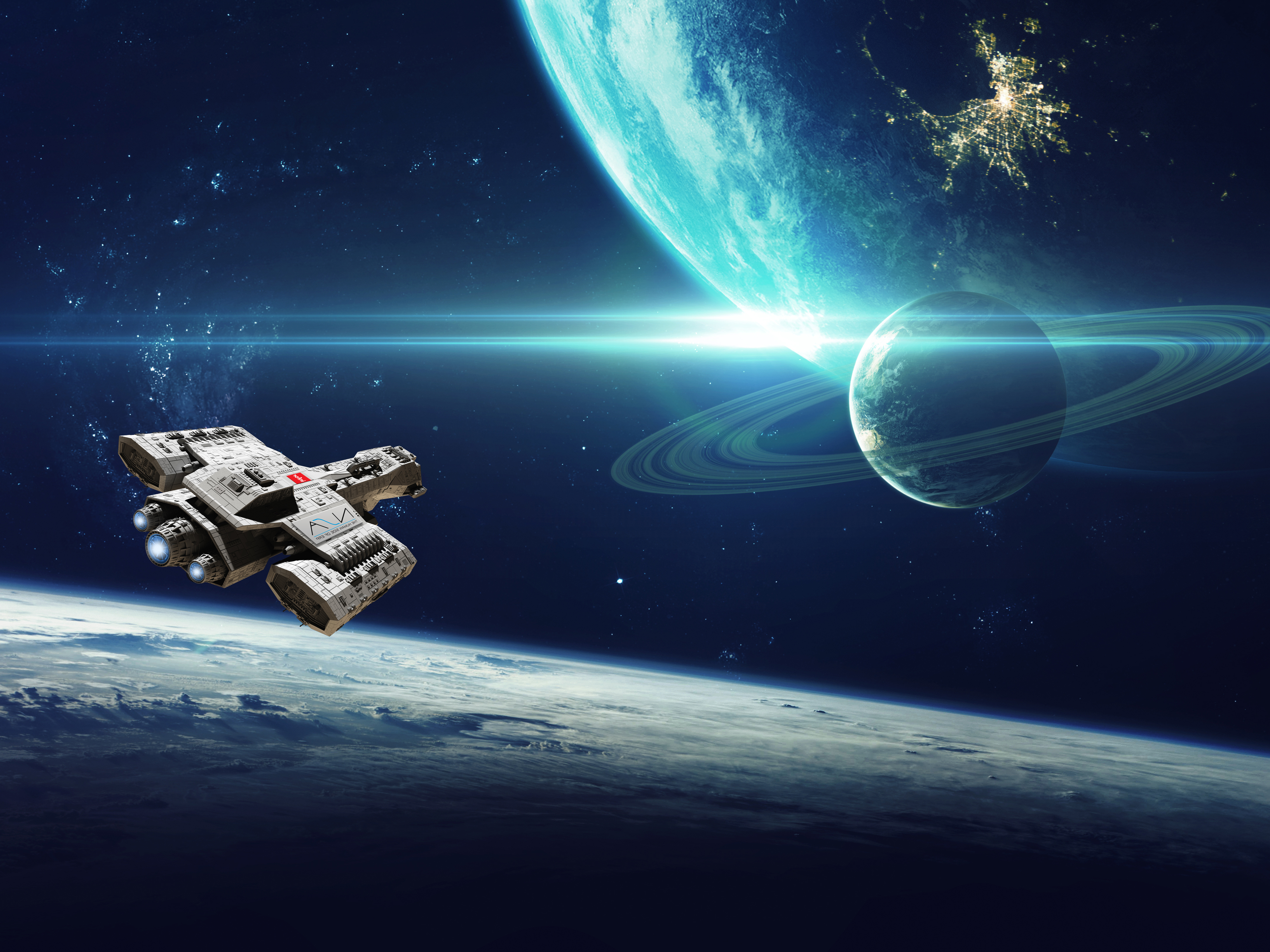 sci-fi_156Spaceship planet galaxy space - Wallpaper