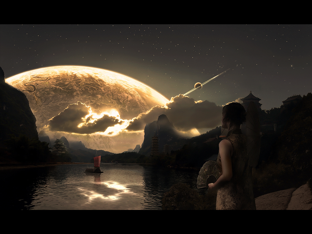 sci-fi_1573D rendered alien planets and spaceships- Wallpaper