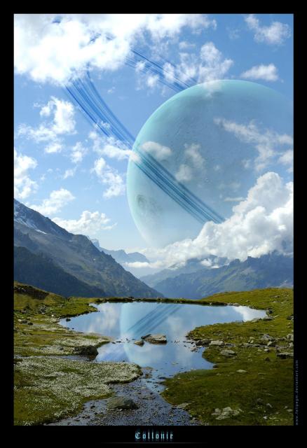 sci-fi_108Astronaut around the crater with water.