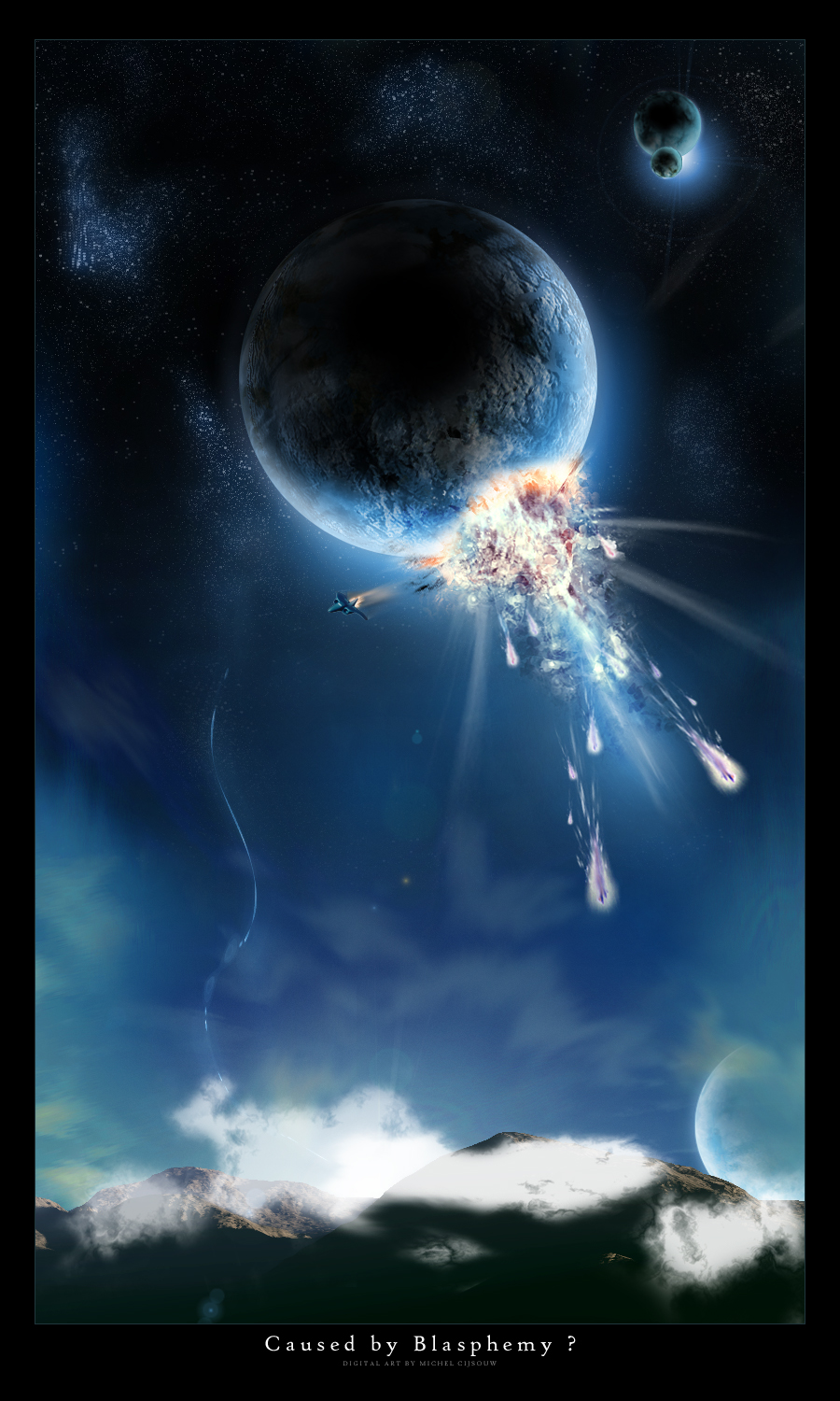 sci-fi_128Five space ships flying to the collapsing planet. Sci-Fi concept. Elements of this image furnished by NASA