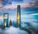 china_805Shanghai Skylines, Shanghai, China. Aerial view of Jin Mao Tower, Shanghai tower, Shanghai World Financial Center and Oriental Pearl Tower
