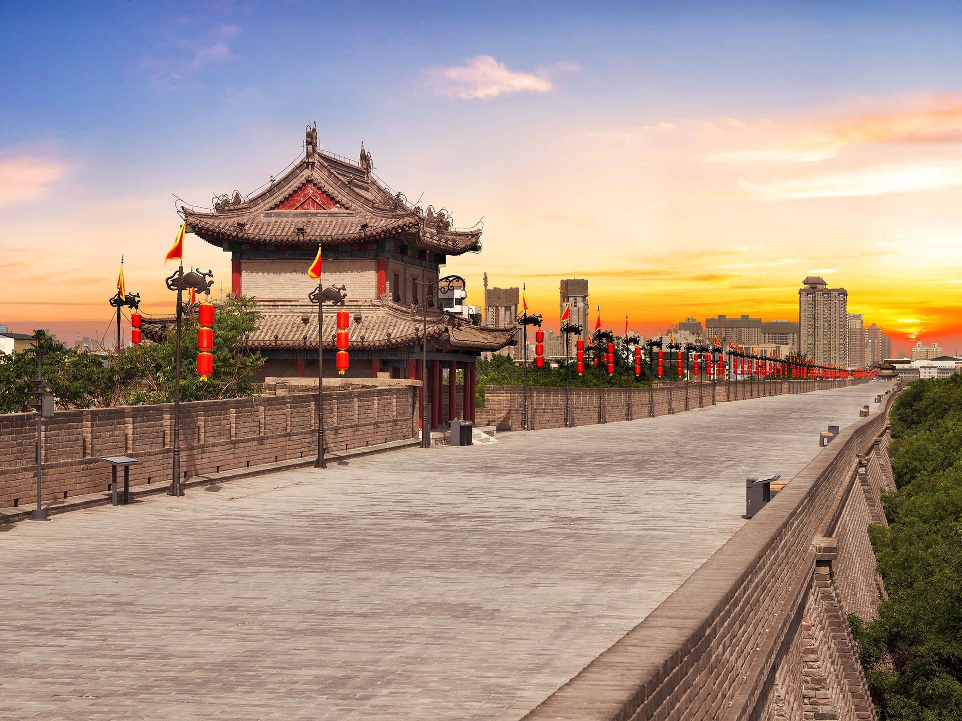 china_932The historic city wall in Xian, China. The fortifications of Xi'an (Chinese: 西安城墙), also known as Xi'an City Wall, in Xi'an, represent one of the oldest, largest and best preserved Chinese city walls. It was built under the rule of the Hongwu Emper