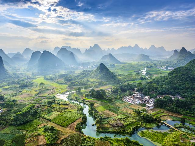 Yangshuo County (simplified Chinese: 阳朔县; traditional Chinese: 陽朔縣; pinyin: Yángshuò Xiàn) is a county under the jurisdiction of Guilin City, in the northeast of Guangxi, China. Its seat is located in Yangshuo Town. Surrounded by karst peaks and bordered on one side by the Li River, it is easily accessible by bus or by boat from nearby Guilin.