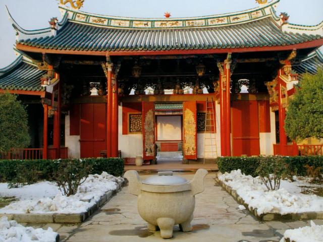 The Forbidden City (Chinese: 紫禁城; pinyin: Zǐjìnchéng) is a palace complex in Dongcheng District, Beijing, China, at the center of the Imperial City of Beijing. It is surrounded by numerous opulent imperial gardens and temples including the 22-hectare (54-acre) Zhongshan Park, the sacrificial Imperial Ancestral Temple, the 69-hectare (171-acre) Beihai Park, and the 23-hectare (57-acre) Jingshan Park.