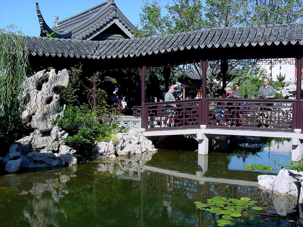 Japanese garden bright autumn colors. Lithia Park, Ashland, Oregon