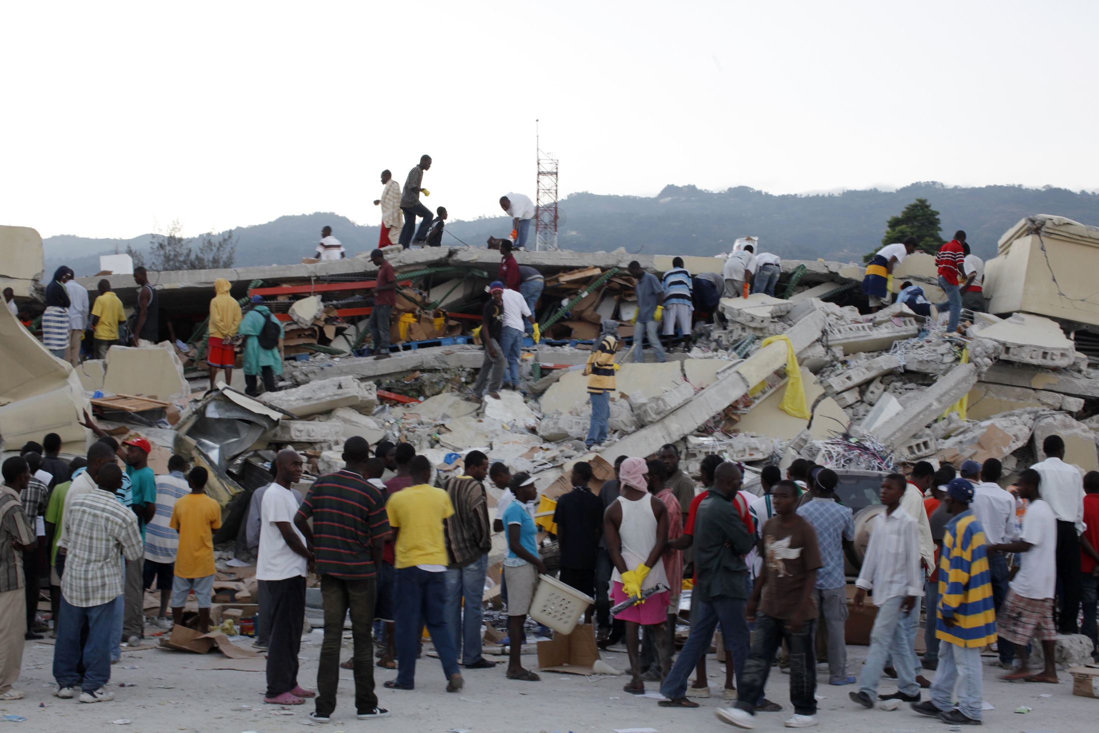 haiti_38People search for survivors under the rubble of a collapsed building the day after an earthquake hit Port-au-Prince, Haiti, Wednesday, Jan. 13, 2010. (AP Photo/Ricardo Arduengo)