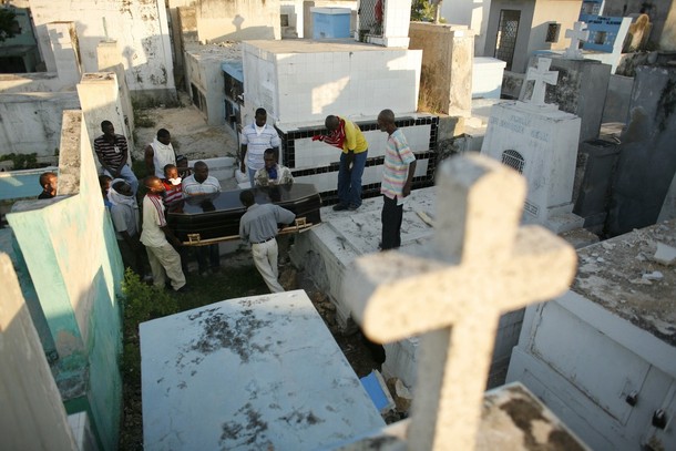 haiti_sixdayslater_031A man pulls the body of an earthquake victim from a coffin in order to steal the coffin at the cemetery in Port-au-Prince, Friday, Jan. 15, 2010. (AP Photo/Ramon Espinosa)