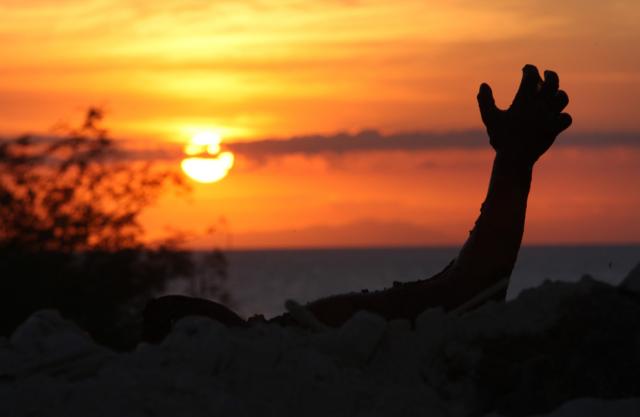 haiti_43A man steps carefully through lifeless bodies piled outside the morgue in Port-au-Prince on January 14, 2010, following a devastating earthquake that rocked Haiti on January 12. (JUAN BARRETO/AFP/Getty Images)