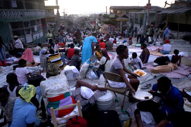 In this handout image provided by the United Nations, Haitians set up impromtu tent cities thorough the capital after an earthquake measuring 7.0 rocked the Haitian capital just before 5 pm yesterday, on January 13, 2010 in Port-au-Prince, Haiti. Much of Port-au-Prince was reduced to rubble by the quake on January 12, but the airport was operational, opening the way for international relief aid to be ferried in by air as well as by sea. (Logan Abassi/MINUSTAH via Getty Images)