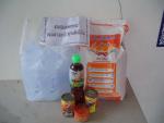 A man with bottles of water wades down a flooded street on October 24, 2011 in Bangbuathong, Thailand. (Daniel Berehulak/Getty Images)
