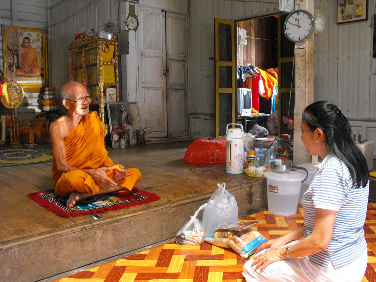thai_flood_54_026An elderly woman walks on a wooden bridge across floodwaters in Bang Bua Thon, in Nonthaburi province, suburban Bangkok, on October 18, 2011. (Nicolas Asfouri/AFP/Getty Images)