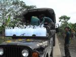 A man floats on a truck tire with supplies of beer as floods advance into central Bangkok on October 26, 2011. (Damir Sagolj/Reuters