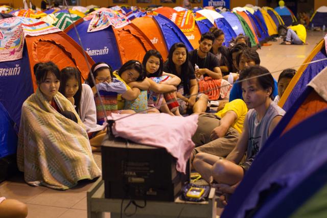 thai_flood_54_010Flood victims watch TV at the Don Muang airport, which had become an evacuation center, on October 23, 2011 in Bangkok. It has since been evacuated. (Paula Bronstein /Getty Images)