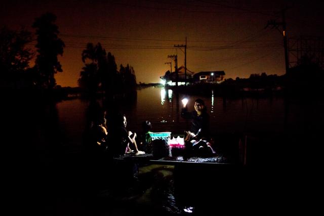 thai_flood_54_021A family evacuates at night along the flooded streets October 22, 2011 in Bangbuathong on the outskirts of Bangkok. (Paula Bronstein/Getty Images)