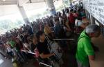 People queue to buy bus tickets to leave the Thai capital at a bus terminal in Bangkok October 27, 2011. (Kerek Wongsa/Reuters)