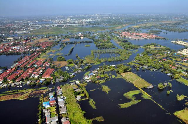 thai_flood_54_008Houses in a residential area are submerged in the northern section of Bangkok on October 30, 2011. (Kyodo News/AP)