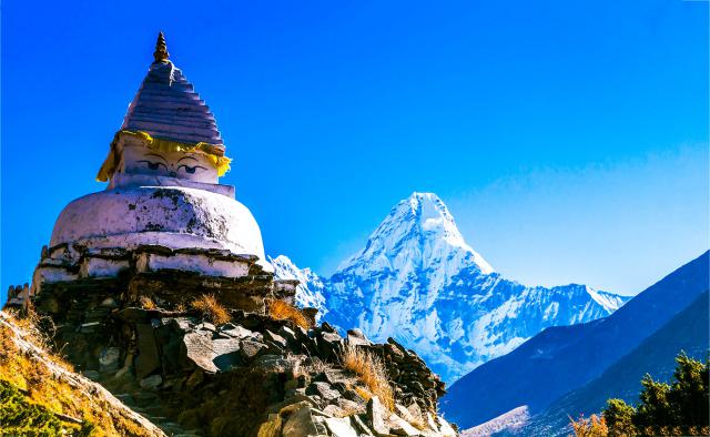 Ama Dablam mountain and temple in Nepal