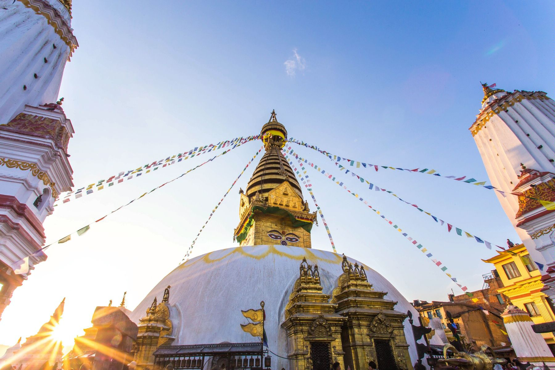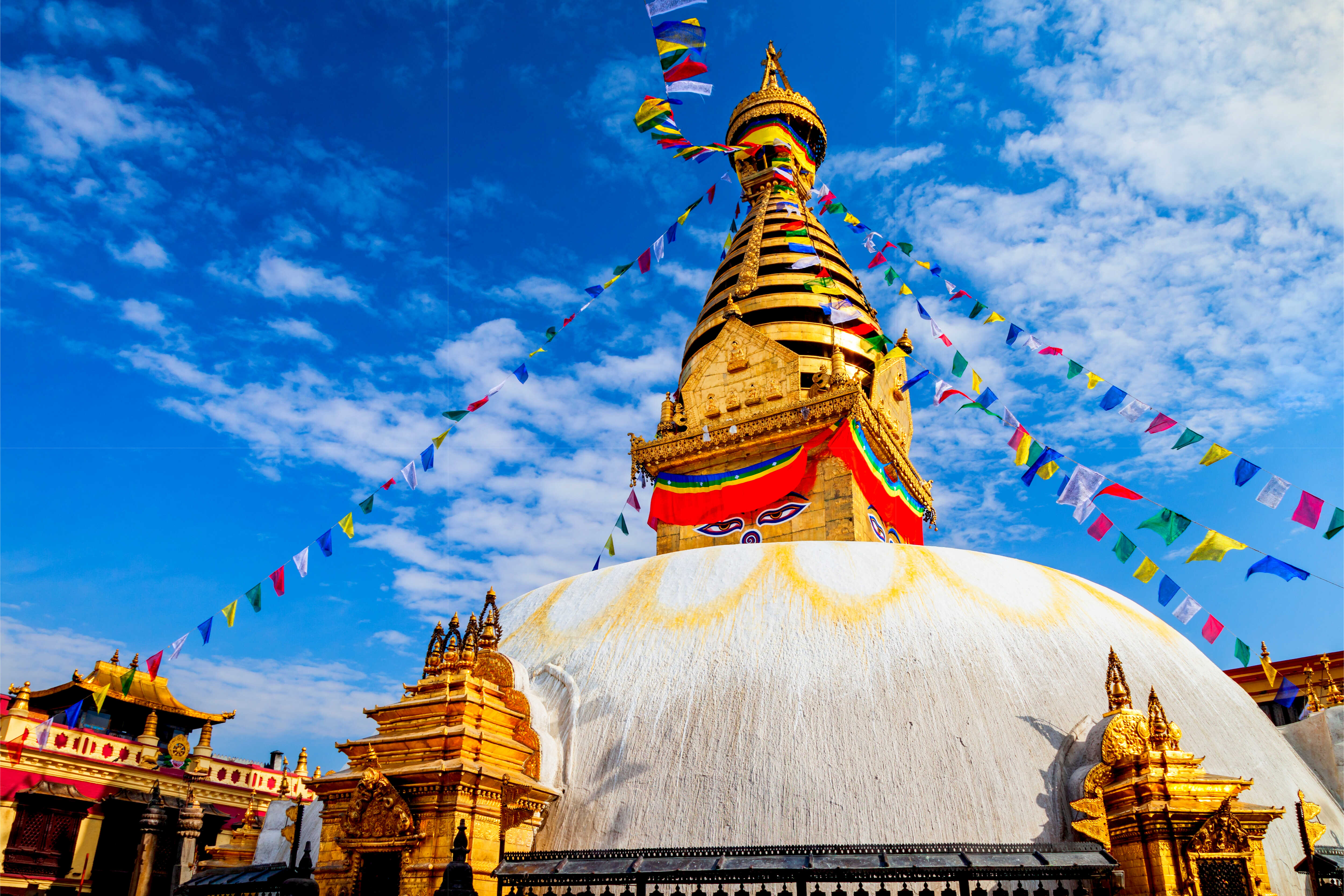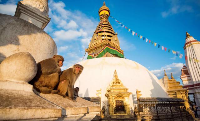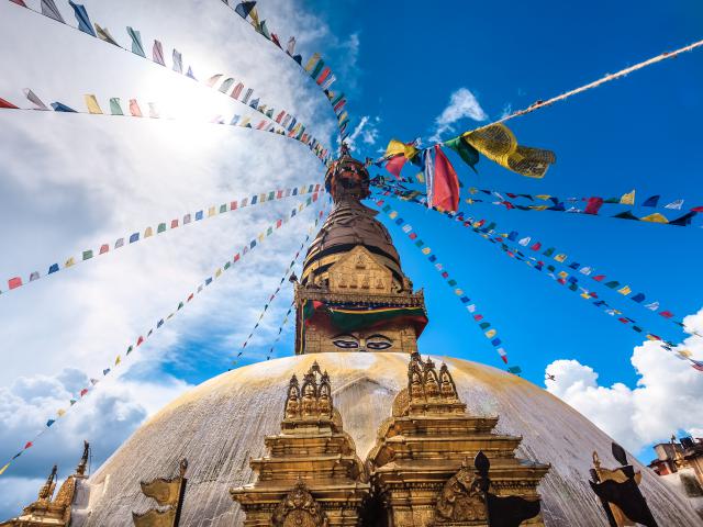 Swayambhunath Stupa stands on the hill in Kathmandu, Nepal