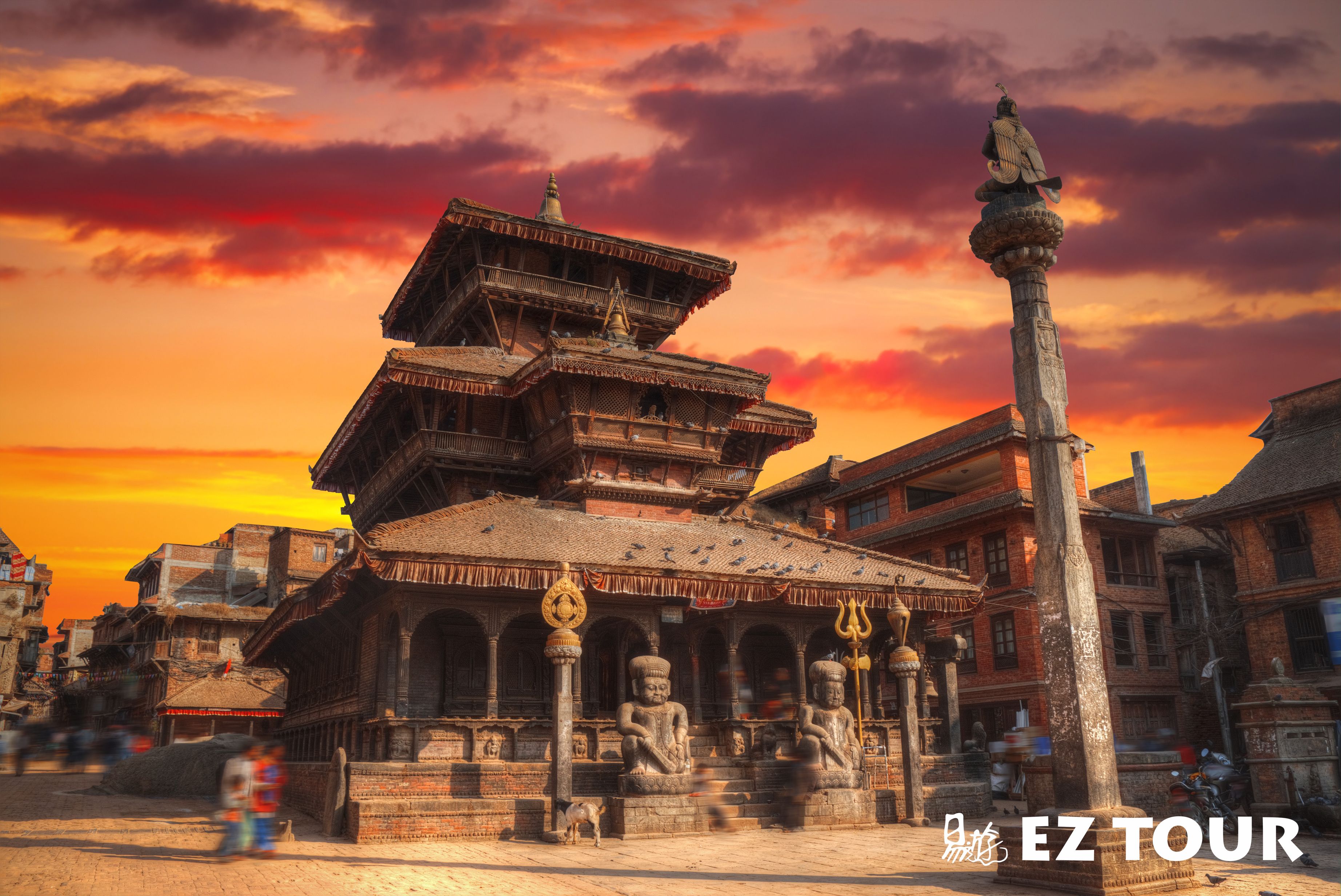 KATHMANDU, NEPAL - OCTOBER 19, 2015 : Sunset over Patan Durbar Square in Nepal.