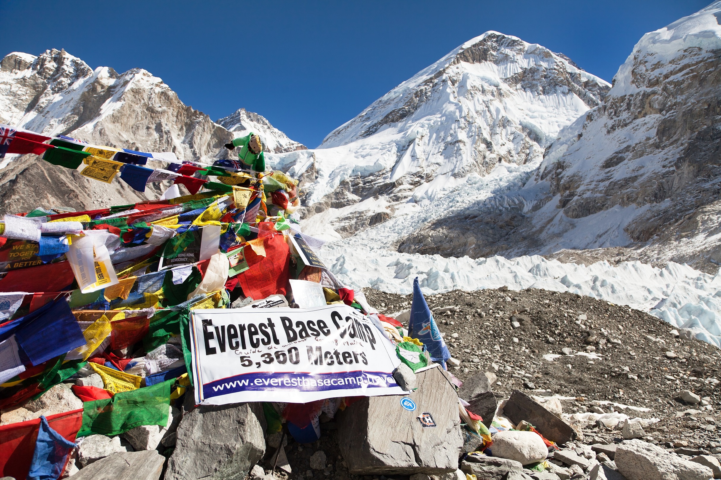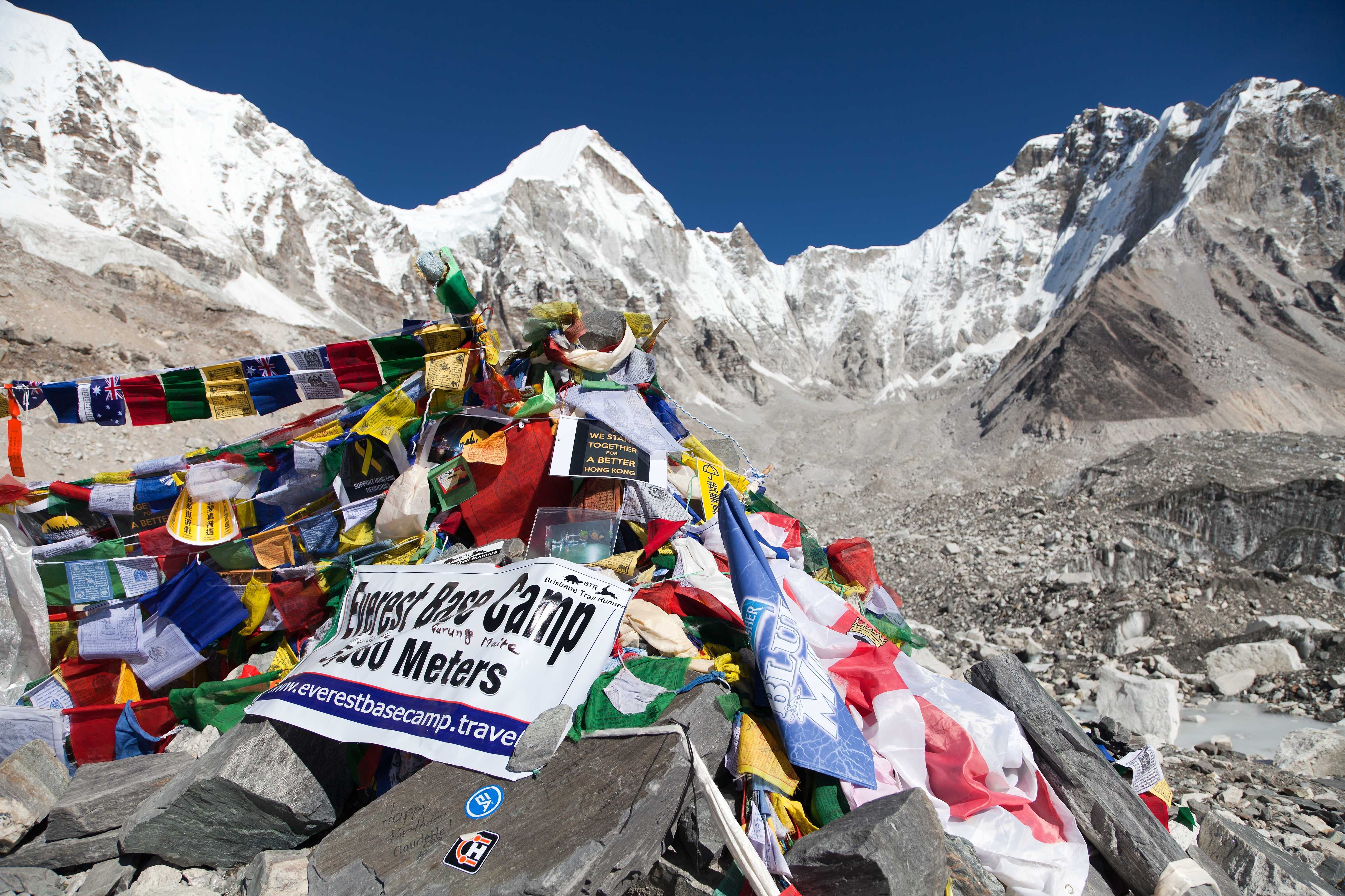 Everest Base Camp, here starts the climb to reach the top of the highest mountain in the world, Everest Region, Sagarmatha National Park, Himalayas, Nepal