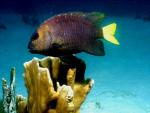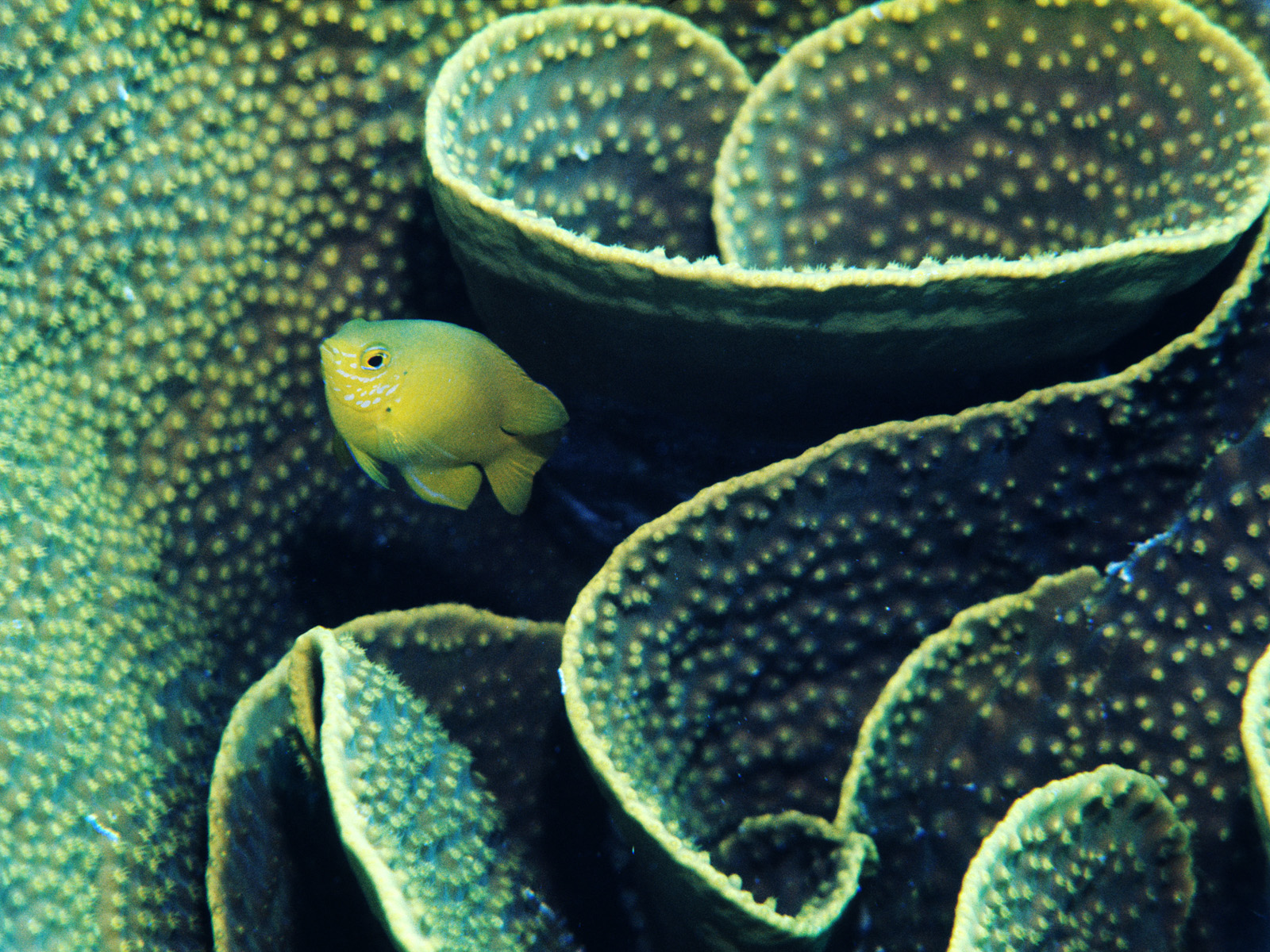 ocean-life-804Damselfish swim in shallow water in Palau's inner lagoon. Palau is known for its beautiful rock islands, prolific marine life, and world class scuba diving and snorkeling.