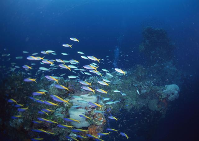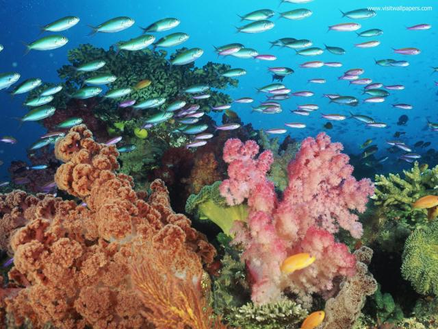 ocean-life-778Underwater coral reef scenery with colorful school of fish.