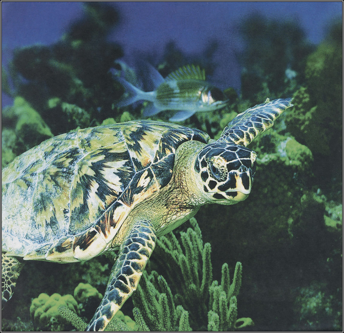 ocean-life-815Hawksbill Sea Turtle in clear blue water