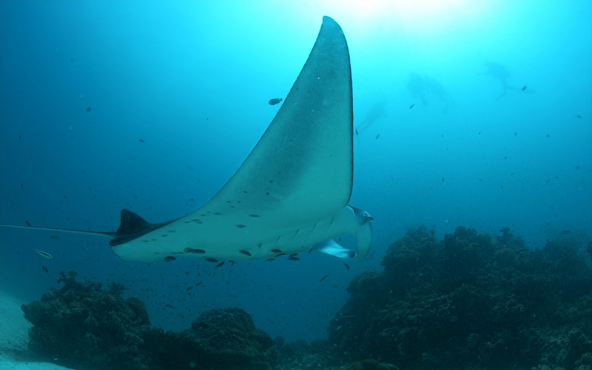ocean-life-740Manta ray filter feeding above a coral reef in the blue Komodo waters