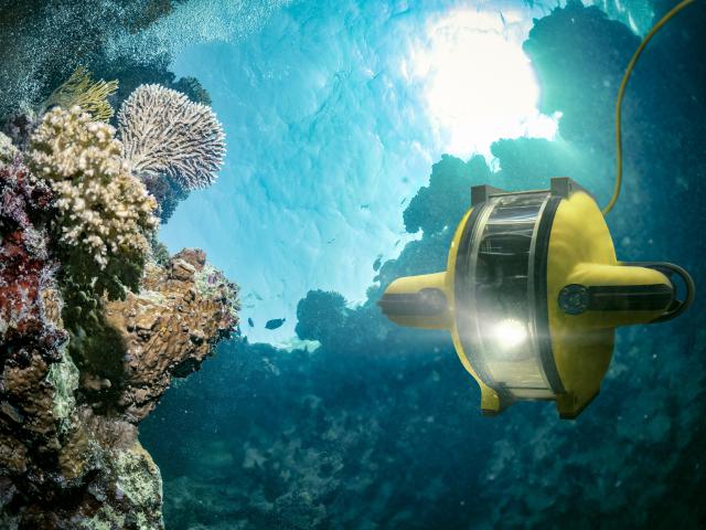 ocean-life-780Underwater robot explores the deep sea - This image is an illustration, หุ่นยนต์ใต้น้ำสํารวจทะเลลึก