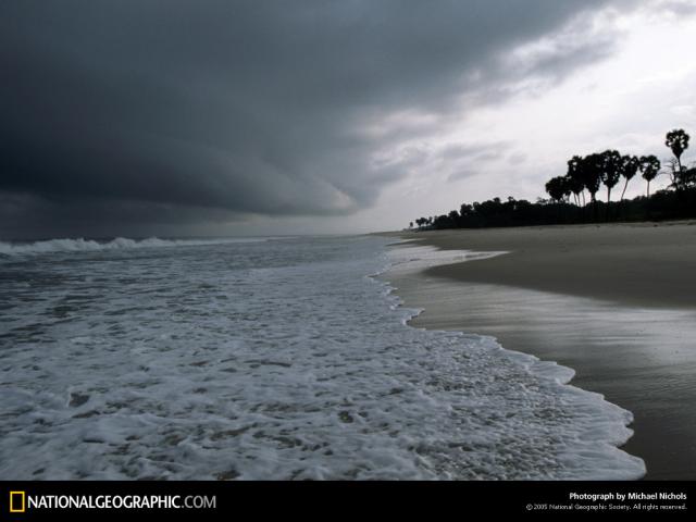 ng3_503Churning waters retreat from the battered coast of Kalutara, Sri Lanka, after the December 2004 tsunami drove the ocean more than half a mile (1 kilometer) inland. In deeper waters, tsunamis can travel up to 500 miles (800 kilometers) per hour.